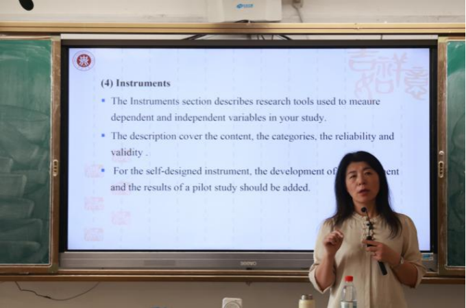 芮燕萍以“外语学科学术论文写作与规范”为题,系统讲解了学术论文的整体框架,强调了学术规范的重要性,指出本科论文应聚焦2-3个可操作的研究问题,确保研究的针对性和深度。她深入浅出地讲解了如何依据逻辑分类梳理文献综述,鼓励师生紧跟学术前沿,不断提升科研写作能力。