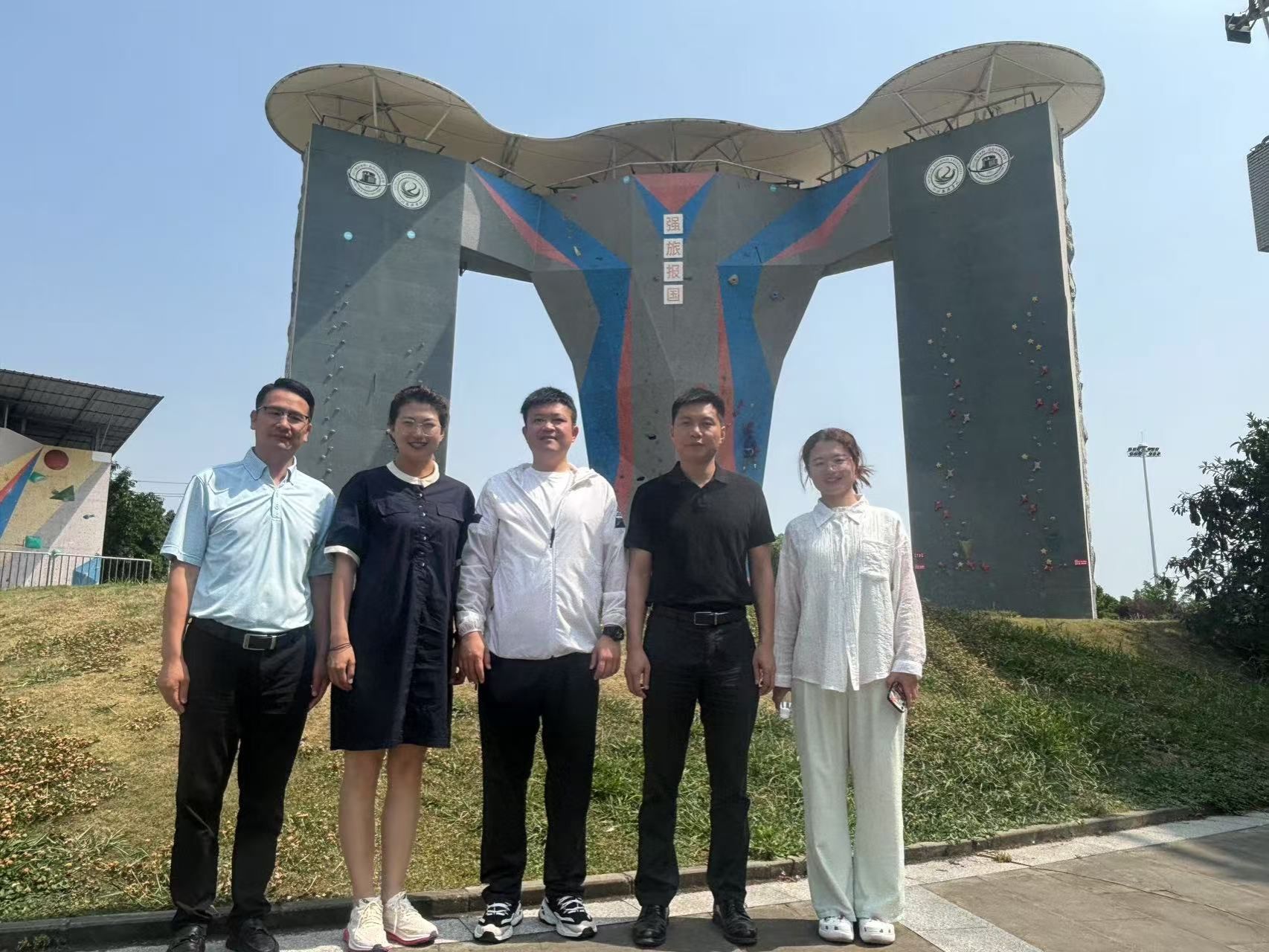运动与休闲学院副院长金克林带领交流团队实地参观了高尔夫球场、百姓唐球场地、休闲运动馆、滑雪、攀岩、羽毛球等室内场馆、室外攀岩墙等多个特色教学场地,并且观摩学习了由国家队退役运动员执教的攀岩课程。在参观过程中,金副院长详细介绍了由四川旅游学院自主创新与研发的新型特色体育项目百姓唐球,其设计理念、赛制规则、教学实践为Beat365官网休闲体育项目的开发提供了发展新思路。