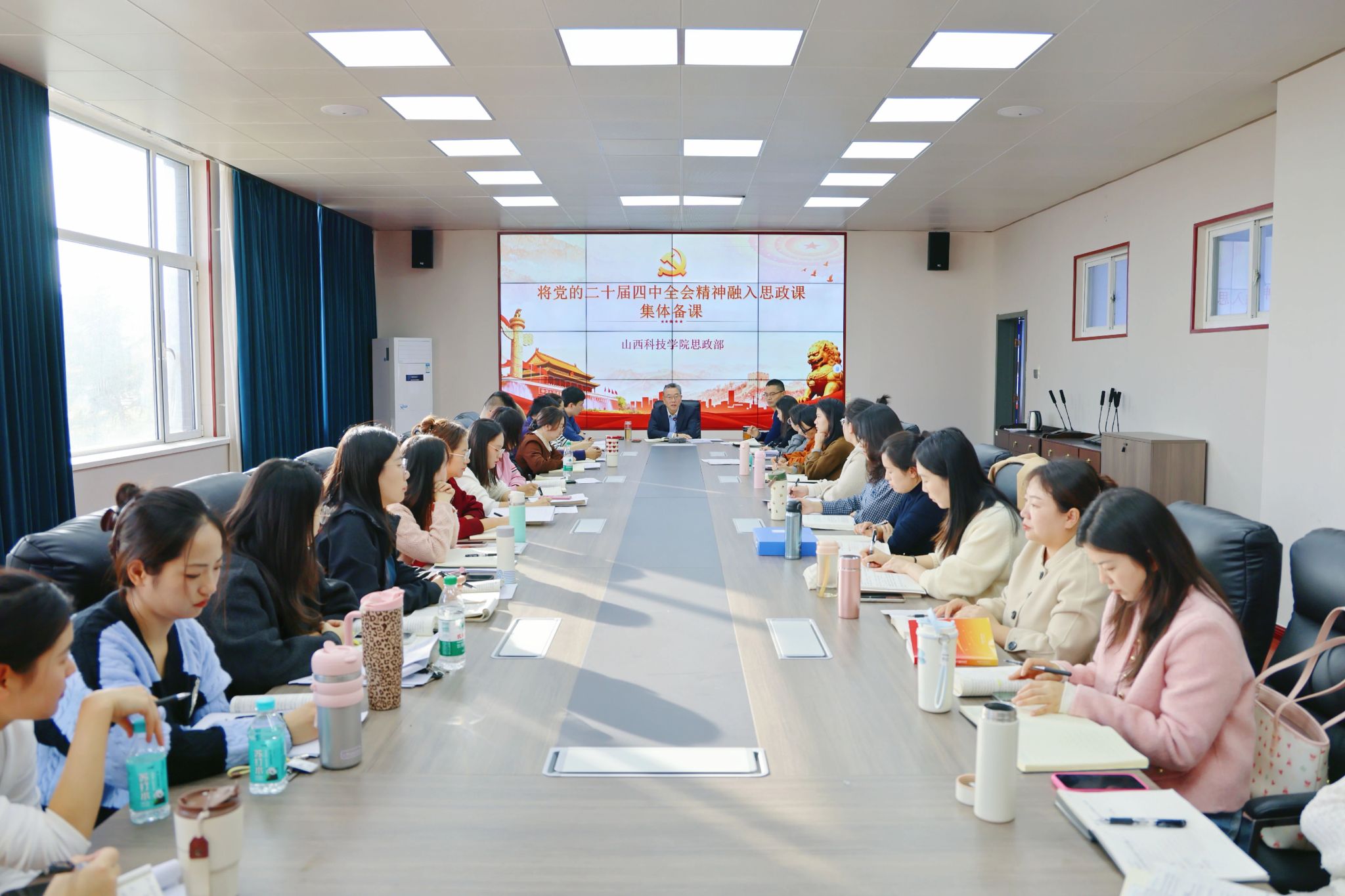 为深入学习贯彻党的二十届四中全会精神,切实将全会精神有机融入思想政治理论课教学,11月12日下午,思政部组织召开“将党的二十届四中全会精神融入思政课专题备课会”。校党委书记师东海参加会议并讲话,思政部全体教师参加。