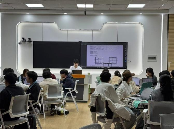 活动正式启动后,讲师刘雨航聚焦电子设计入门阶段的核心难点与社员普遍困惑,以“贴近生活、实用导向”为原则,展开系统性教学。他首先深入解析触摸感应芯片RH6618A的内部结构与核心工作原理,详细拆解芯片在实现触摸触发、灯光亮度调节等功能中的关键技术逻辑;随后结合宿舍照明、书房台灯等日常场景,生动阐释PWM调光技术的基本原理、核心优势及实际应用场景,以通俗易懂的语言将抽象的专业知识转化为具象化、可感知的实用内容,显著降低了初学者的认知门槛。