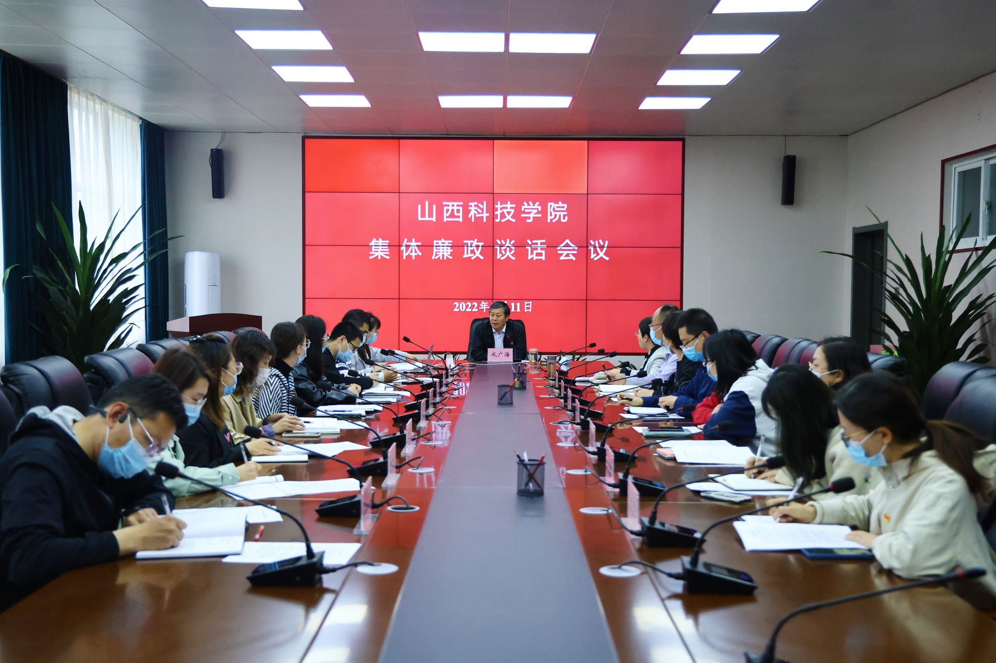 5月11日上午,校纪委对13名新任直属党支部书记和人才办临时负责人进行集体廉政谈话,就廉洁从政、廉洁用权、廉洁修身、廉洁齐家等问题,通过关心、提醒、警示,帮助新任职干部“扣好廉洁从政‘第一粒扣子’”。校党委委员、纪委书记、监察专员成广海出席会议并讲话。