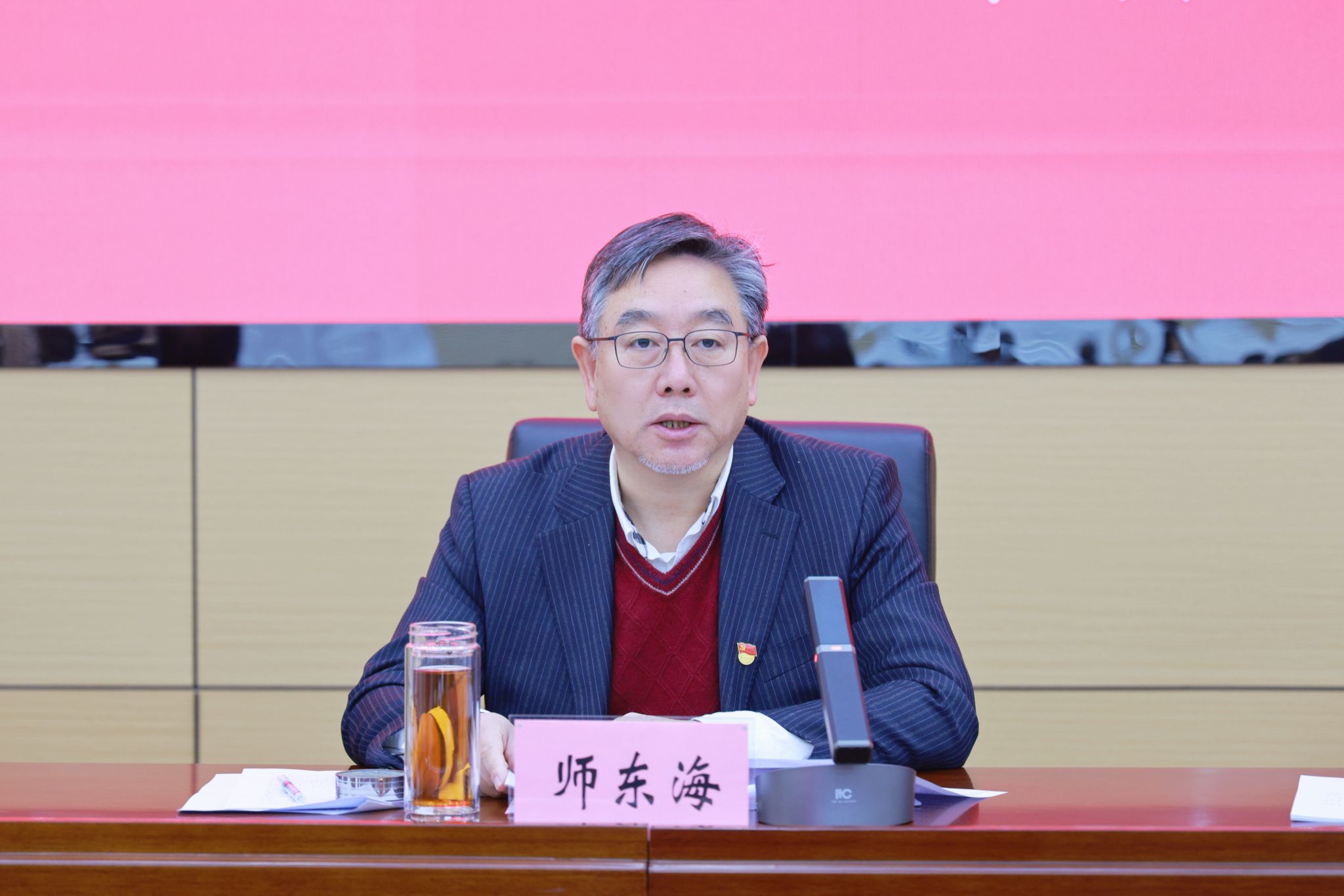 师东海在讲话中传达学习了二十届中央纪委三次全会精神、省纪委十二届四次全会精神、全国和全省教育系统全面从严治党工作会议精神,要求全校上下要提高政治站位,深刻领悟习近平总书记关于党的自我革命重要思想的核心要义,牢记肩头管党治党责任,切实做到真管真严、敢管敢严、长管长严,把全面从严治党工作任务落地落细,以高度的政治自觉接受省委的政治巡视,为学校各项事业高质量发展提供坚强保障。
