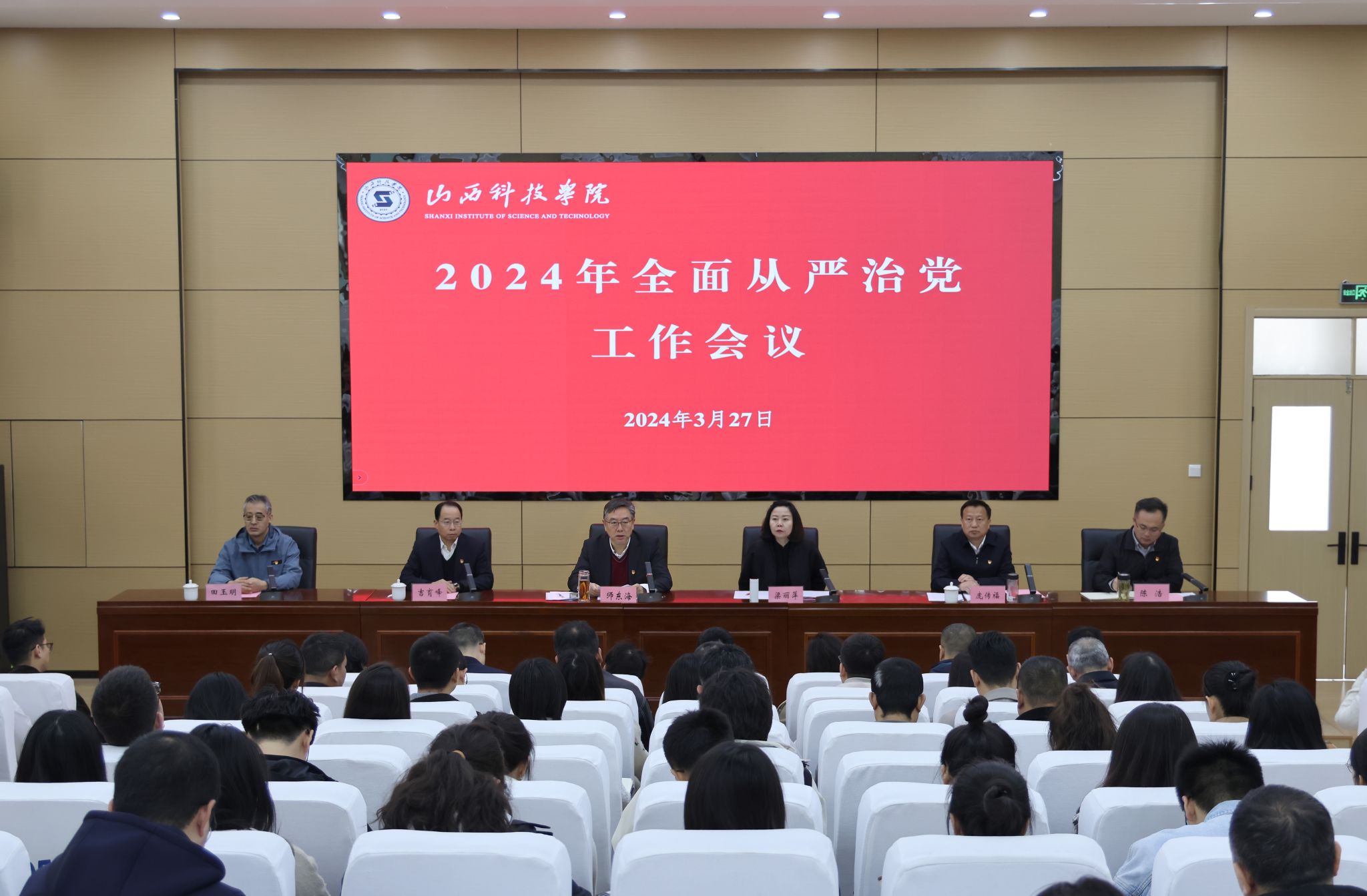 3月27日上午,Beat365官网召开2024年全面从严治党工作会议,校党委书记师东海,校长梁丽萍,校党委班子成员出席会议。师东海主持会议并作全面从严治党工作报告,纪委书记、监察专员庞传福就党风廉政建设和反腐败工作进行安排部署。