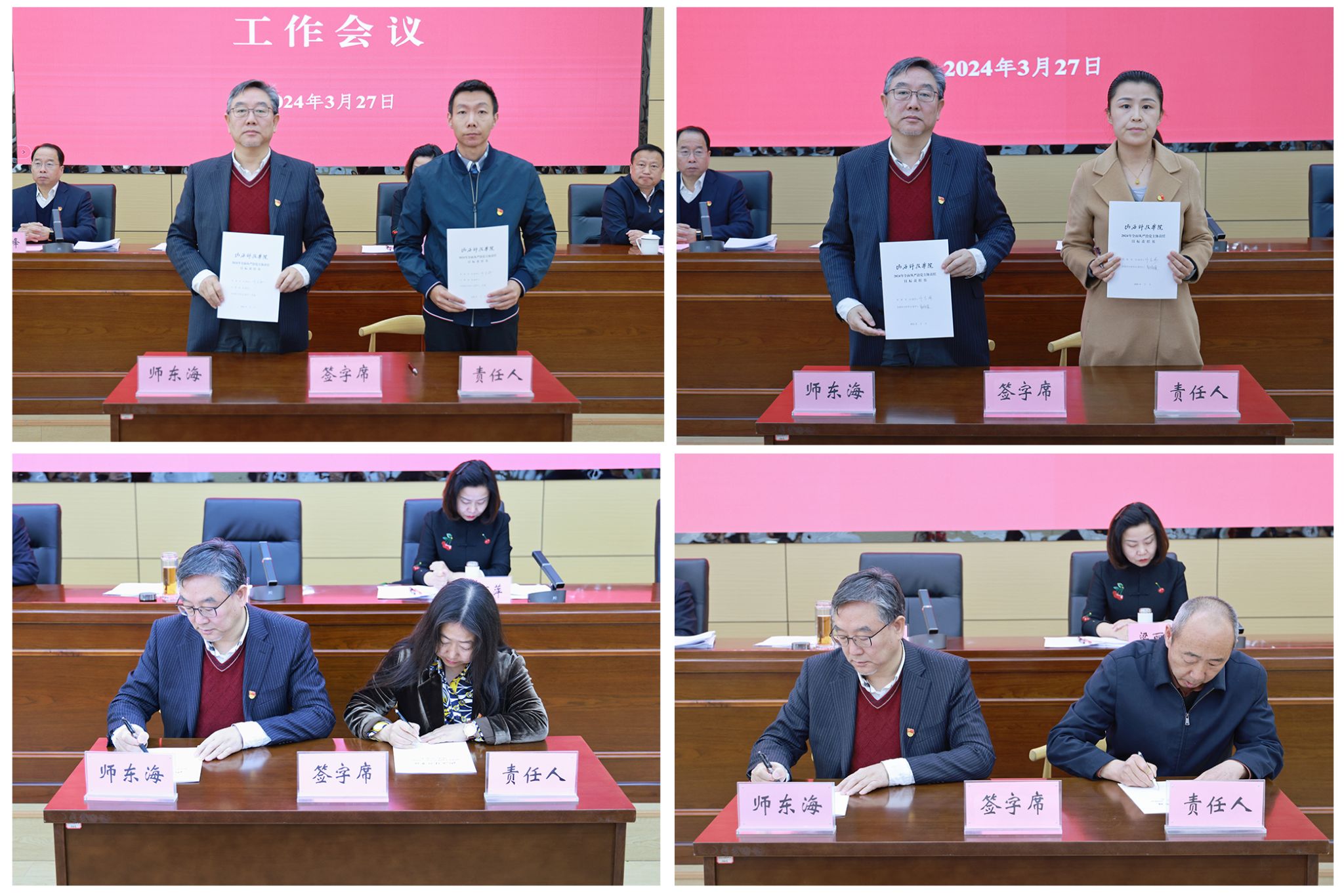 会上,师东海分别与直属党支部书记代表及党务部门、行政职能部门临时负责人、二级学院院长(临时负责人)代表签订“全面从严治党责任书”。