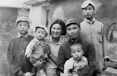 1945年梁金生(右二)离开延安去越南前与家人的合影。 梁金生烈士纪念馆供图