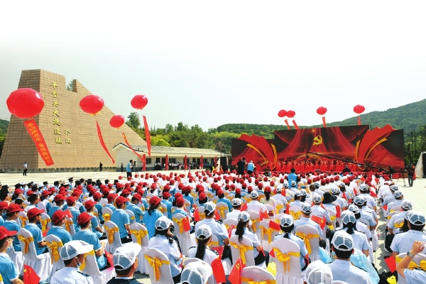 回望平型关丰碑,再创新时代业绩。2021年6月29日,大同市庆祝建党100周年系列活动暨“从胜利走向胜利”主题节目展演在灵丘县平型关大捷遗址乔沟广场举行。 张燕伟摄