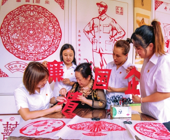 晋能控股煤业集团盘城岭矿员工与剪纸艺人一起创作“崇廉、尚廉、守廉”作品,助推清廉国企建设。