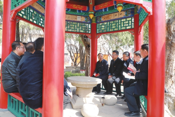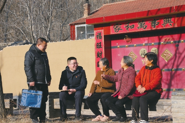 大同市灵丘县独峪乡纪检监察干部和杜家河村群众交流村里“家底子”,了解增产增收等情况。