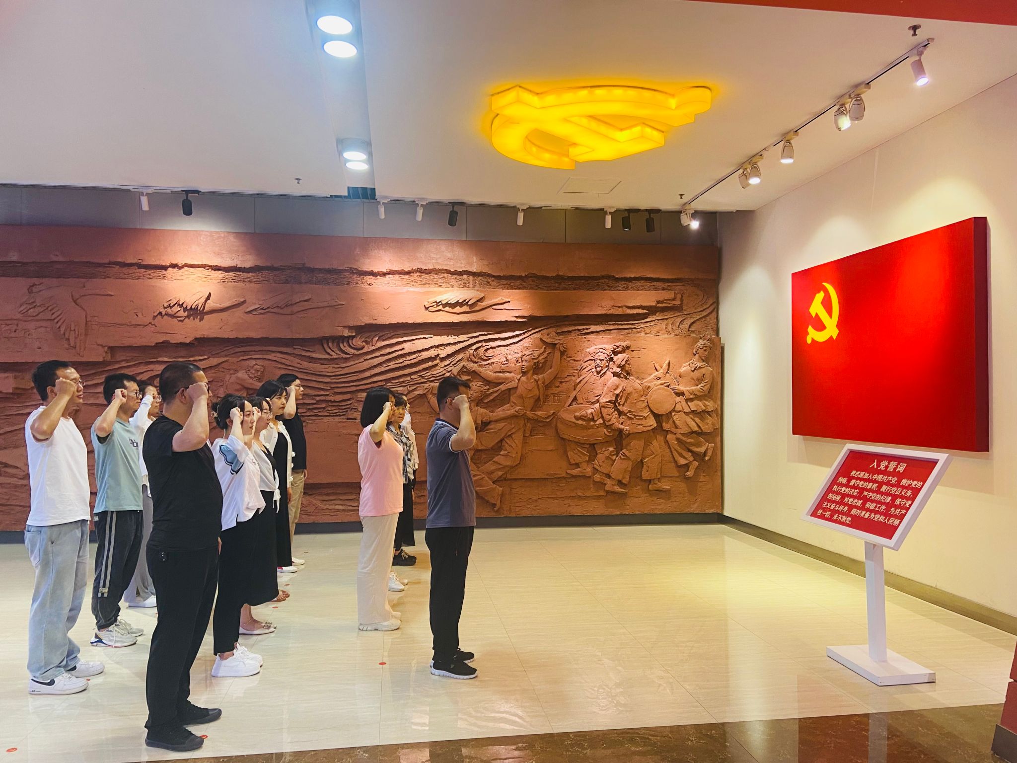 接着,全体党员来到焦裕禄同志纪念馆,认真聆听焦裕禄同志带领兰考人民战风沙、斗内涝、治盐碱的感人故事,面对党旗,重温了入党誓词。党员同志们看到焦裕禄同志下乡访民情调研的场次数据,看到打满补丁的被褥、伤痕累累的藤椅、“十条工作方法”“干部十不准”等物品和图片资料,看到当代还原的治“三害”场景,深刻感受到他为国为民的务实作风。